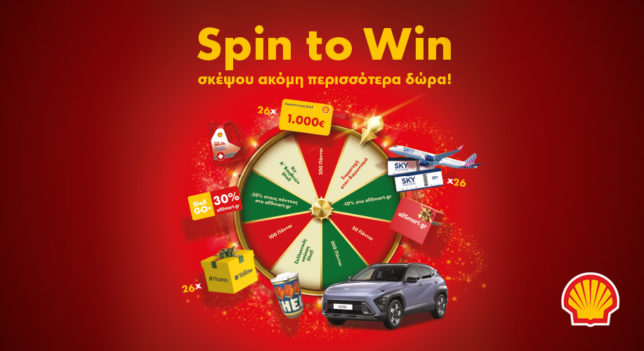 - Kέρδισε spins* για να γυρίσεις τον τροχό στην ενότητα «Spin to Win» του Shell GΟ+ app